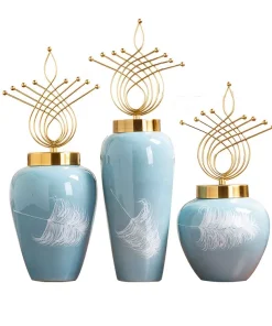 Handpainting pottery Decorative Porcelain Art Craft Ceramic Vase Jar with Brass Lid