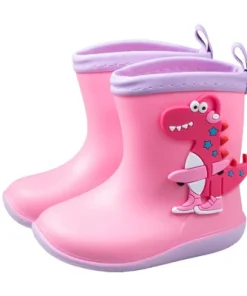 Kids Rain Boots Cute Dinosaur Children’s Boots Plush Warm Waterproof Water Shoes Rain Boots