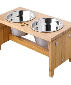 Wooden Dog Puppy Pet Bowls Stand Water Food Feeder Pet Dish Holders Pet Cages Carriers & Houses Eco-Friendly